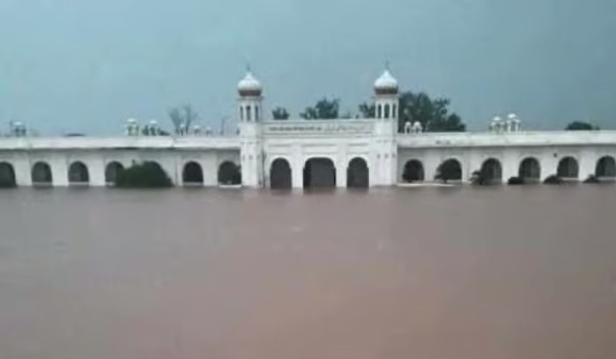 The historic Gurdwara Darbar Sahib in Kartarpur, Narowal, has been severely affected by flooding after the Ravi River overflowed, following the release of excess water from an Indian dam.